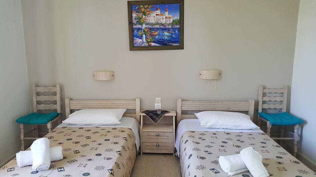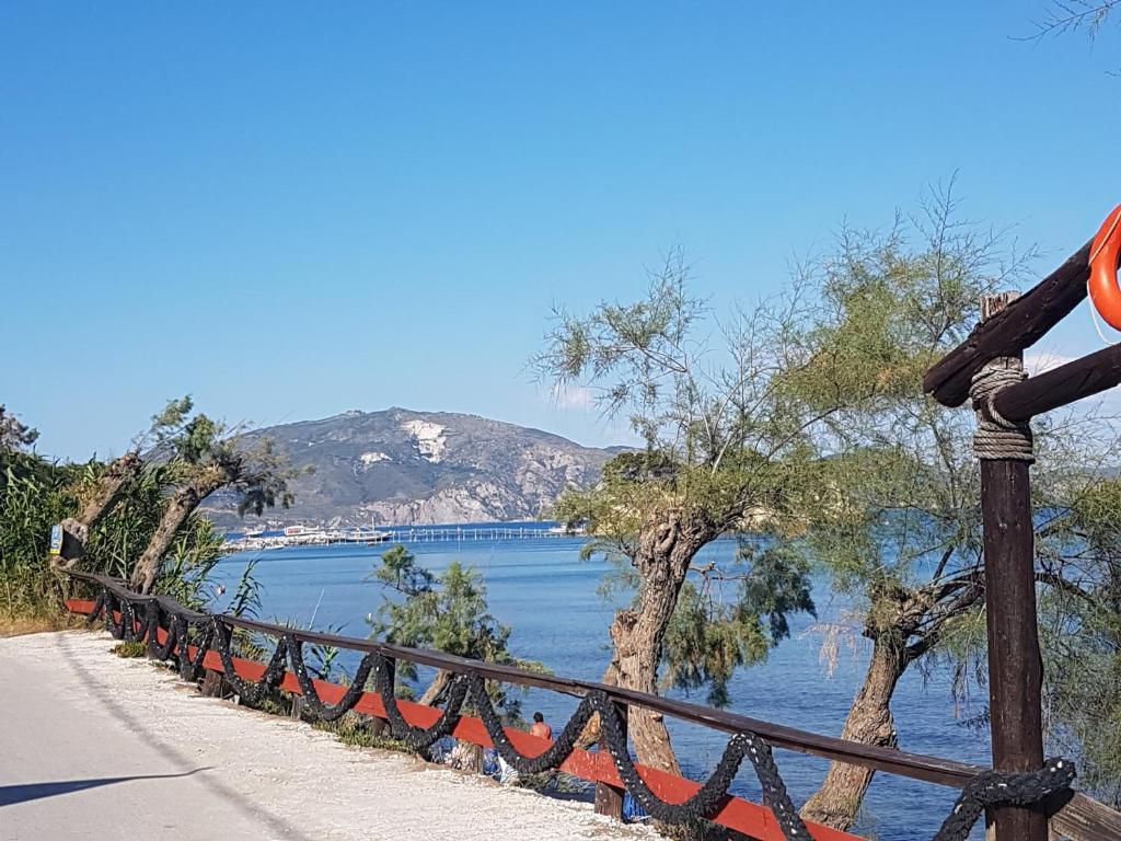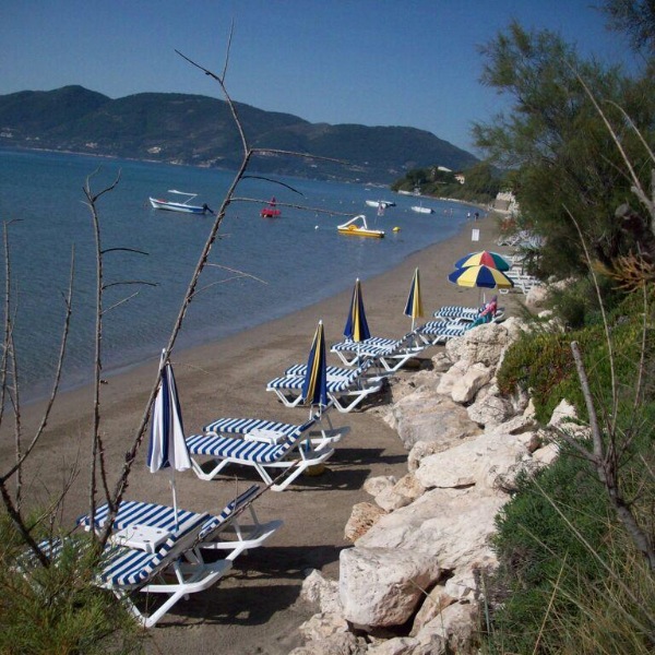 Lega: ob peščeno prodnati plaži (vmes cesta), na obrobju vasice Agios Sostis, približno 2 km do letovišča Laganas in 10 km do letališča.